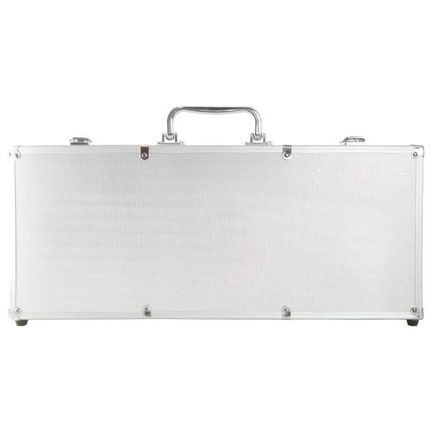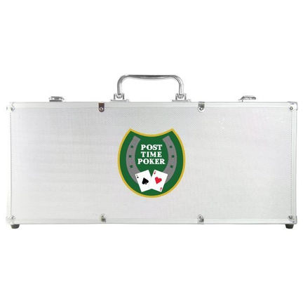 Study bright silver case with 400 multi-colored chips, dice, buttons, and two decks of playing cards. Case may be screen printed.