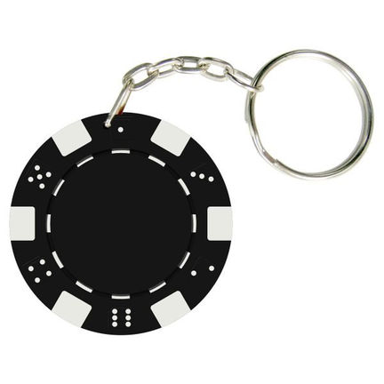 Great for One Color Foil Stamp logos. Our dice style poker chip key chain is constructed of a durable clay-resin that provides an authentic casino feel and added durability. The 11.5 gram clay composite poker chip key chain, is the perfect solution for give-a-ways, promotion, advertising, and much more.